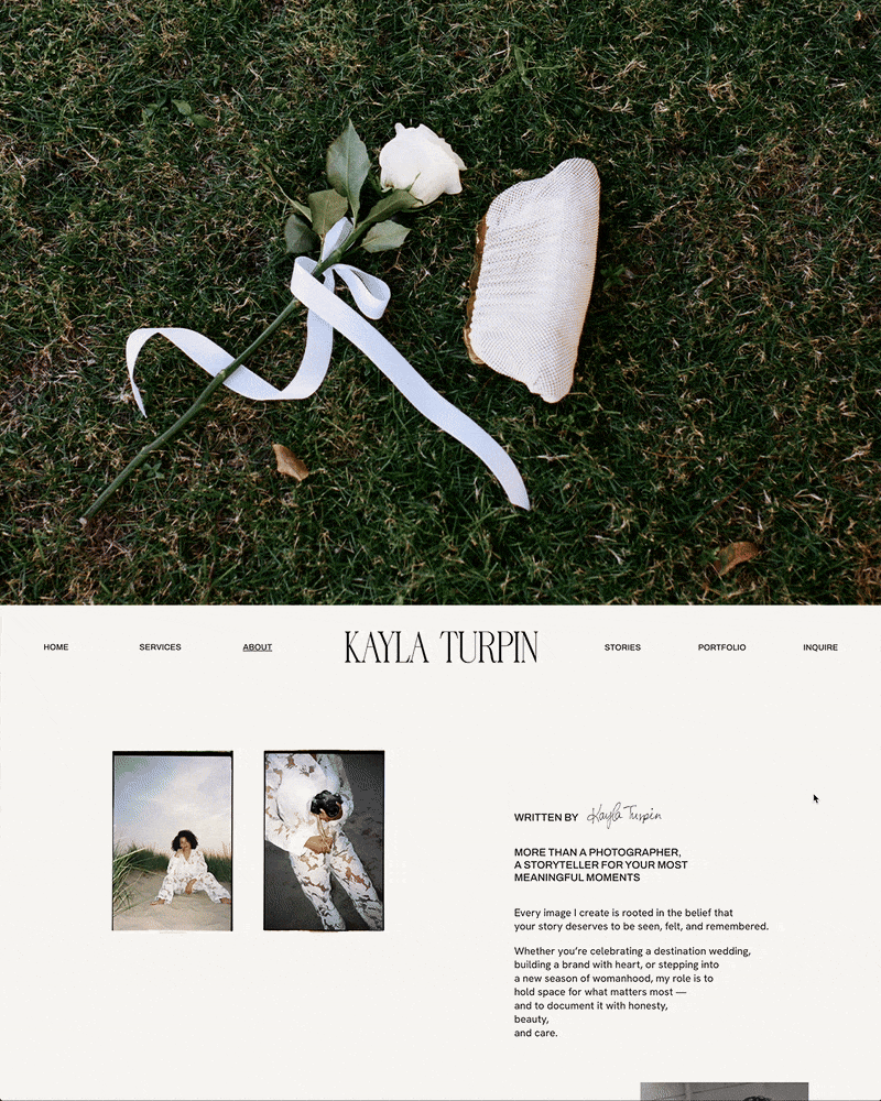 Kayla Turpin Photography is a space rooted in the belief that your story deserves to be seen, felt, and remembered. It is a space that blends nostalgic storytelling and meaningful connection with elevated artistry - creating a digital gallery of heirloom wedding, brand, editorial, and womanhood imagery that feels deeply personal, timeless, and poetic.