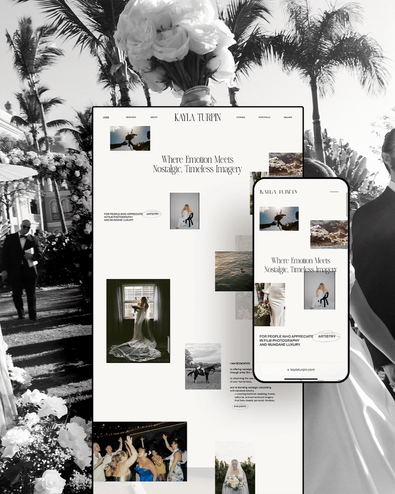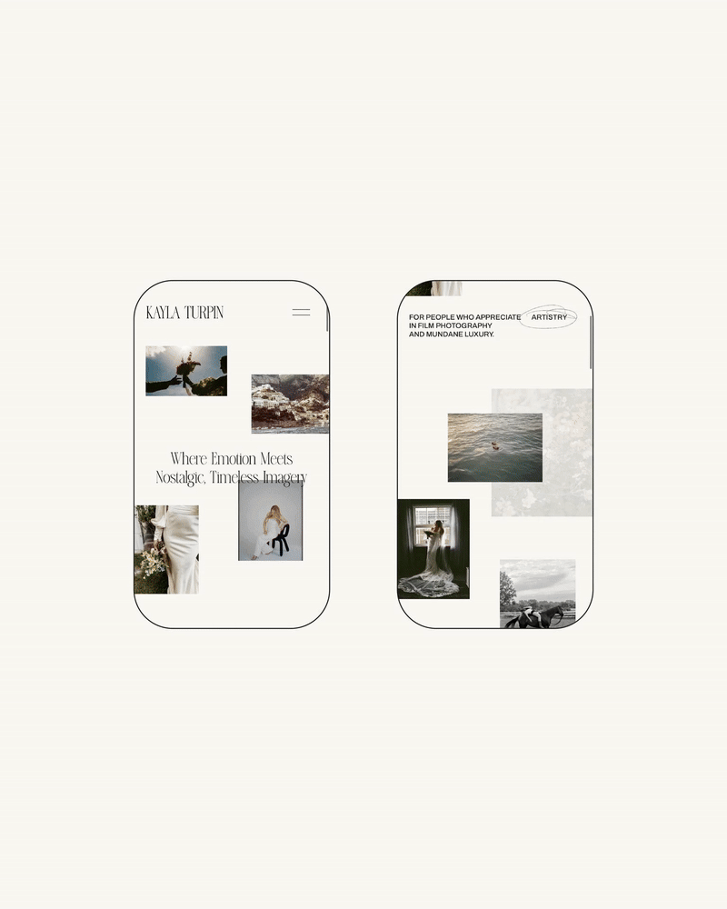 Kayla’s hope was to have a website that felt like a poetic film-focused art gallery, leading viewers through overflowing imagery and inviting them into a dreamlike and inspiring space. We designed this through cascading photography woven with poetry-inspired snippets of text and personal hand-drawn touches.